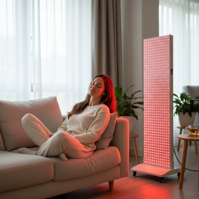 De Mvolo Platinum Series 8000is ons meest geavanceerde rood- en nabij-infraroodtherapie-apparaat. Met7 specifieke golflengten (630–1060 nm), meer dan 210 krachtige LED’s en volledige lichaamsdekking combineert dit apparaat alle voordelen van professionele lichttherapie in één systeem. Het ondersteunt onder andere bij huidverbetering, pijnverlichting, sneller herstel, stressvermindering, betere nachtrust, vetverbranding en mentale scherpte, allemaal veilig vanuit huis.